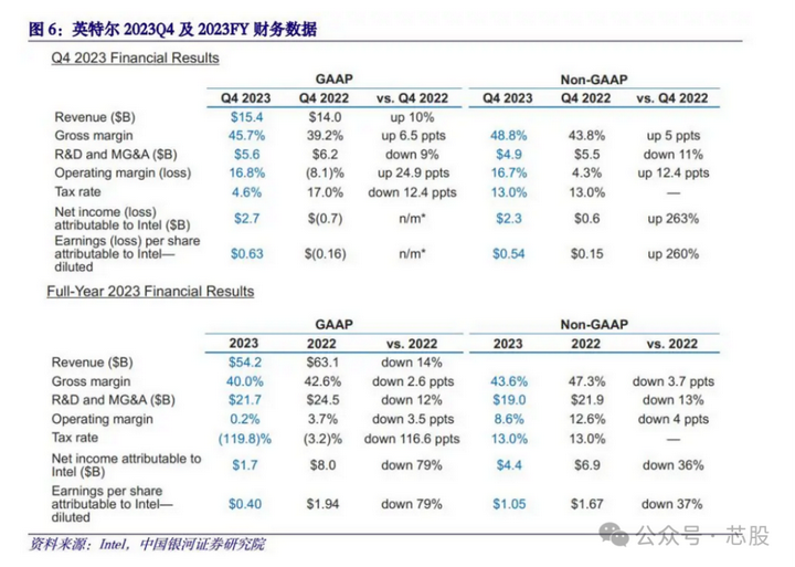 英特尔于2023年1月25日发布2023年第四季度及全年业绩报告。单季度来看,GAAP收入154亿美元,相比于去年同期的140亿美元,同比增长10%。