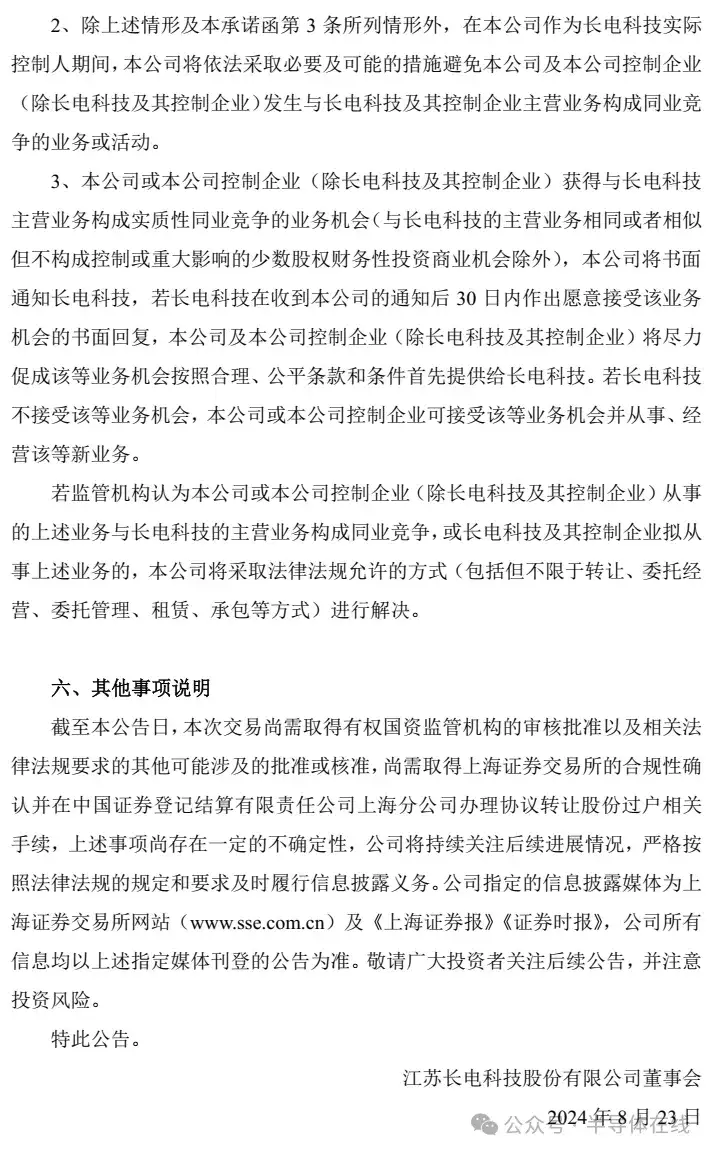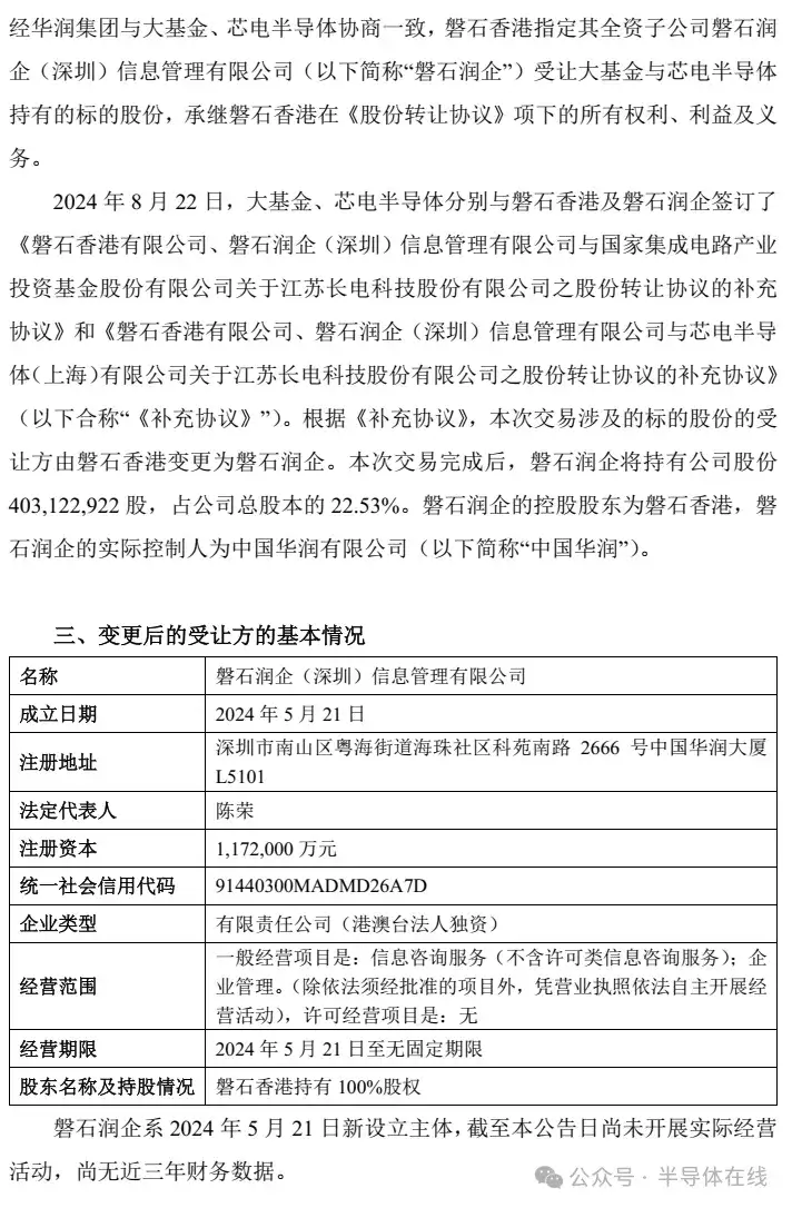 8月22日,江苏长电科技股份有限公司关于公司控制权拟发生变更的进展公告。
