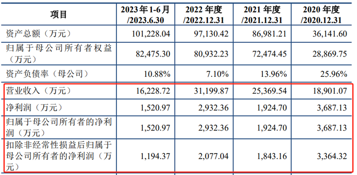 财务方面,报告期内(2020年至2022年,及2023年上半年),和美精艺营业收入分别为1.89亿元、2.54亿元、3.12亿元和1.62亿元,保持稳定增长。但公司的净利润偏低,并存在较大波动,报告期各期分别为3687.13万元、1924.7万元、2932.36万元和1520.97万元。