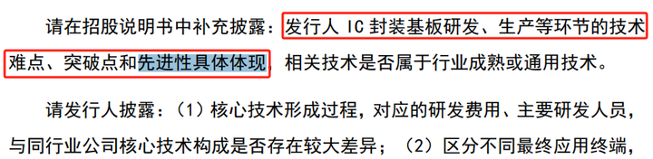 首轮问询中,上交所要求和美精艺梳理“业务与技术”章节,客观准确描述业务实质与市场地位,结合问询回复内容,完善行业情况、市场竞争格局及核心技术部分的信息披露。上交所特别提及“补充披露IC封装基板研发、生产等环节的技术难点、突破点和先进性具体体现,相关技术是否属于行业成熟或通用技术”。
