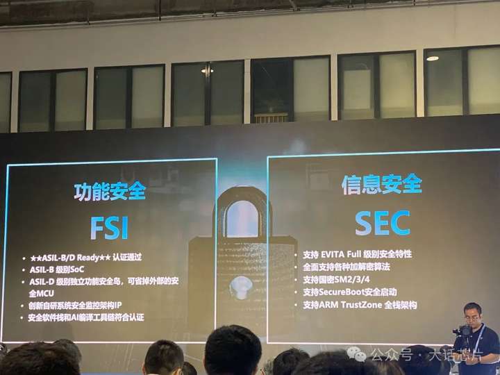 辉羲推出的高阶城区无图自动驾驶方案,不依赖高精地图,能够动态和静态多合一感知,端到端升级扩展。在安全方面,配有最高功能级别的功能安全岛以及安全的子系统。另外,可以支持超过22个摄像头的输入,每秒钟输入的处理像素数大于4G。此外,还有大于200G的内存带宽,能够支撑上述的应用和运算处理。