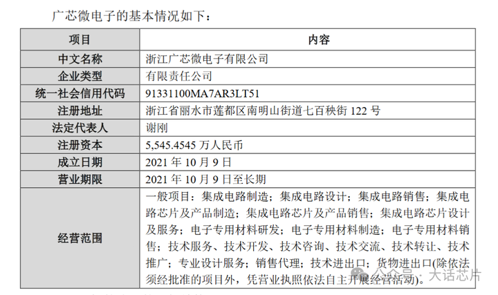 广芯微电子项目于 2023 年 8 月入选 2023 年浙江省重大产业项目,也是浙江省重点半导体建设项目、生产制造方式转型示范项目。广芯微电子于 2023 年被认定为浙江省科技型中小企业,是丽水市半导体行业协会会长单位。
